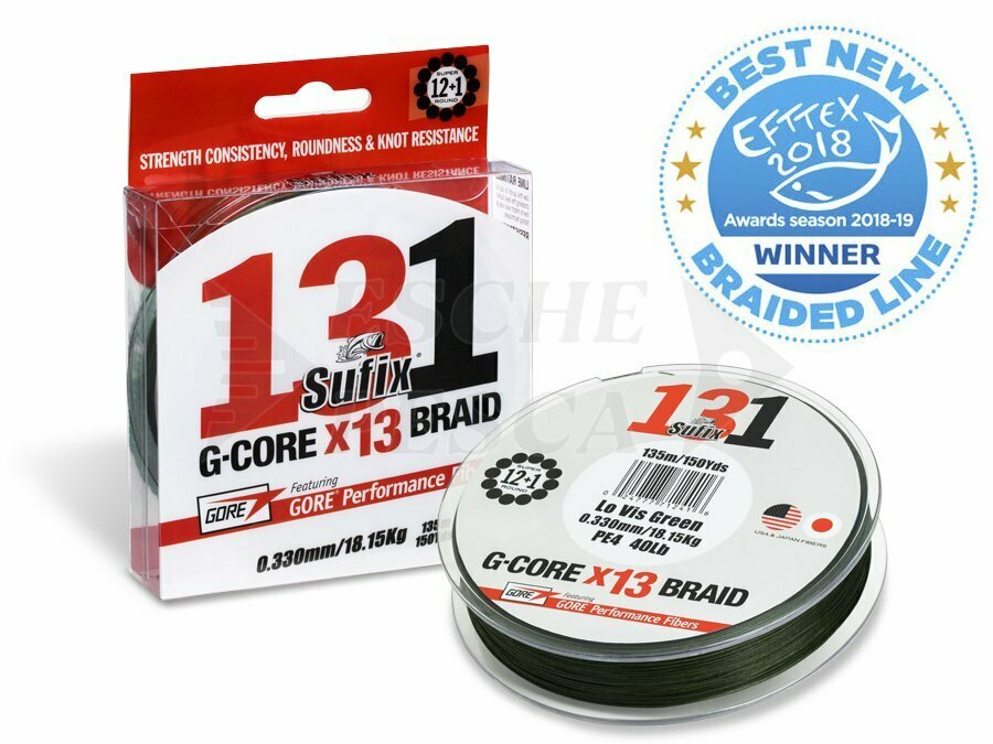 Il NUOVO SUFIX 131 G-CORE BRIDGE composto da 13 fibre è una struttura resistente senza punti deboli, che garantisce lanci affidabili e precisi, ami precisi e un traino sicuro.