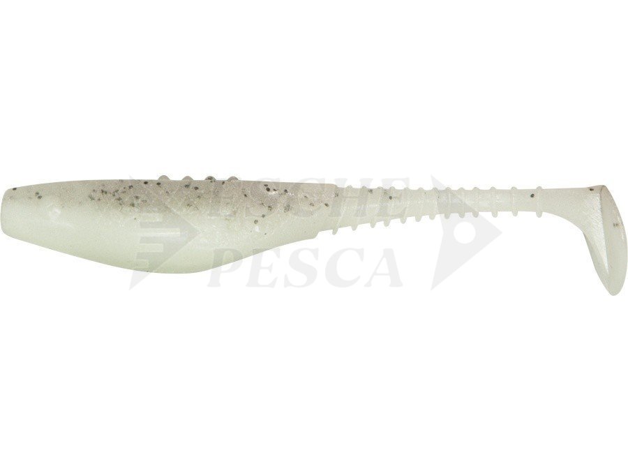 Esche siliconich Dragon Belly Fish Pro 8.5cm - White /Clear - Black glitter