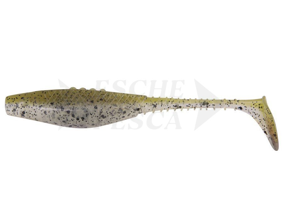 Esche siliconich Dragon Belly Fish Pro 8.5cm - Clear/Olive - Gold/Silver glitter